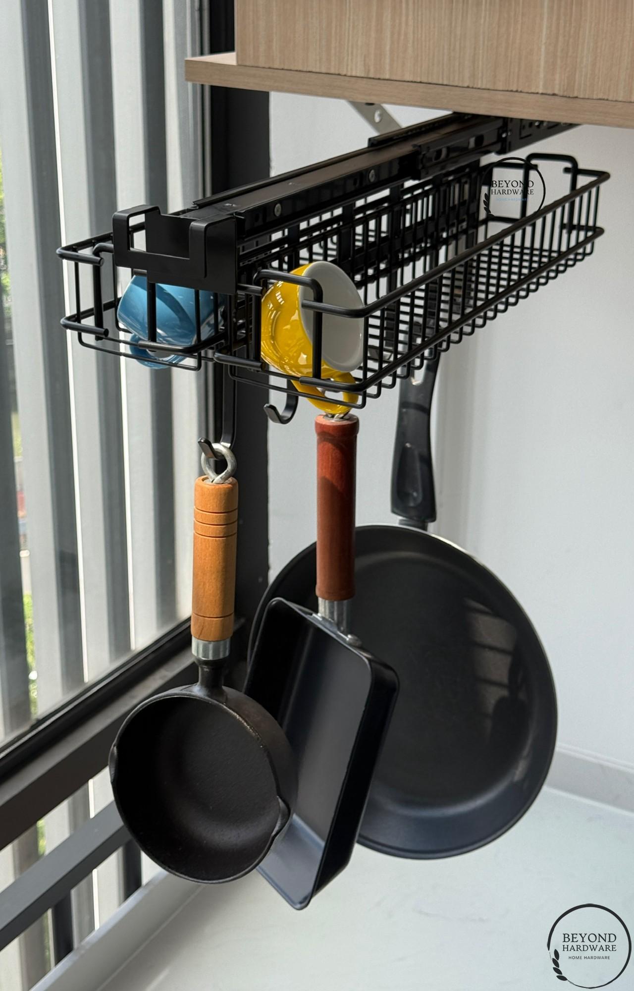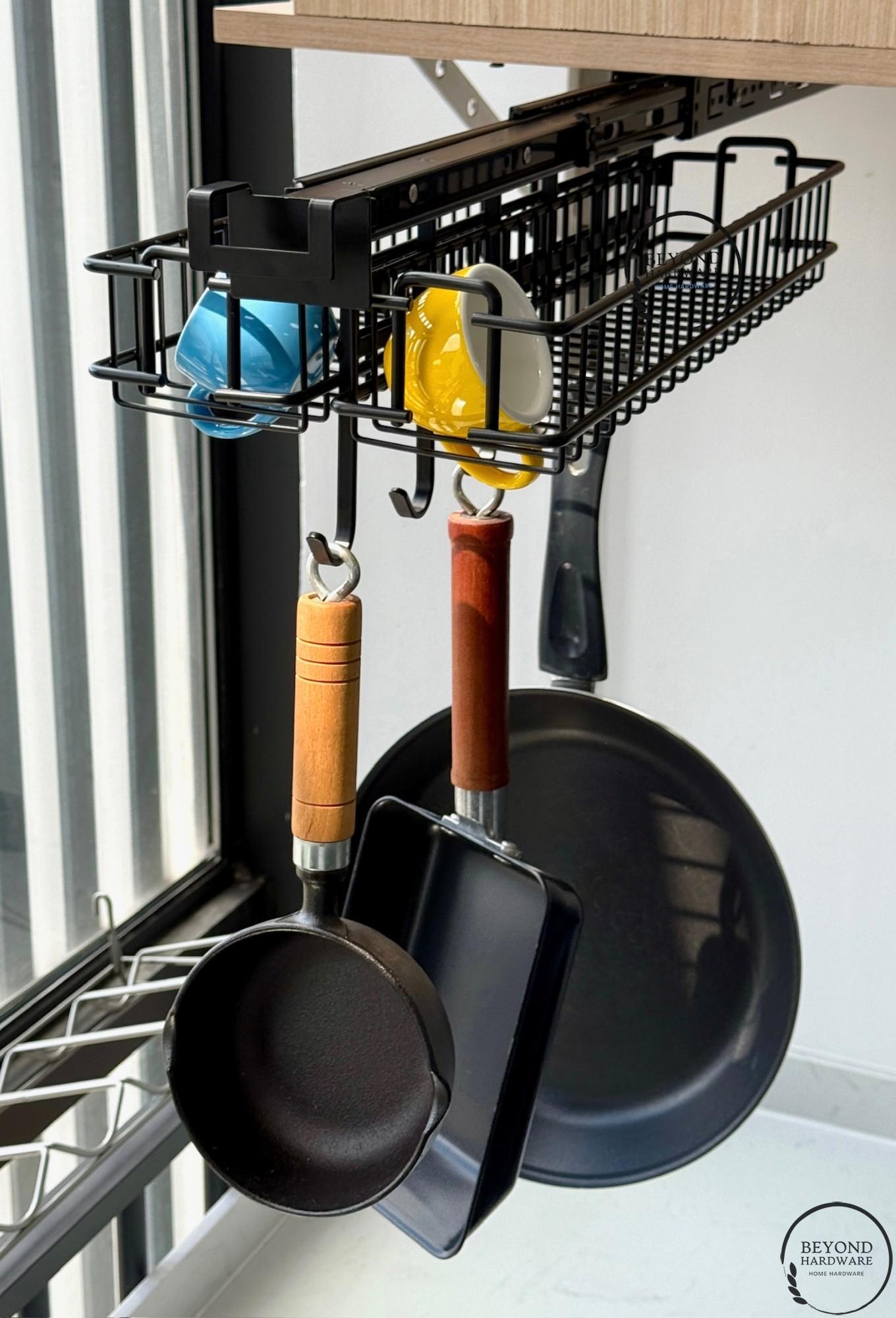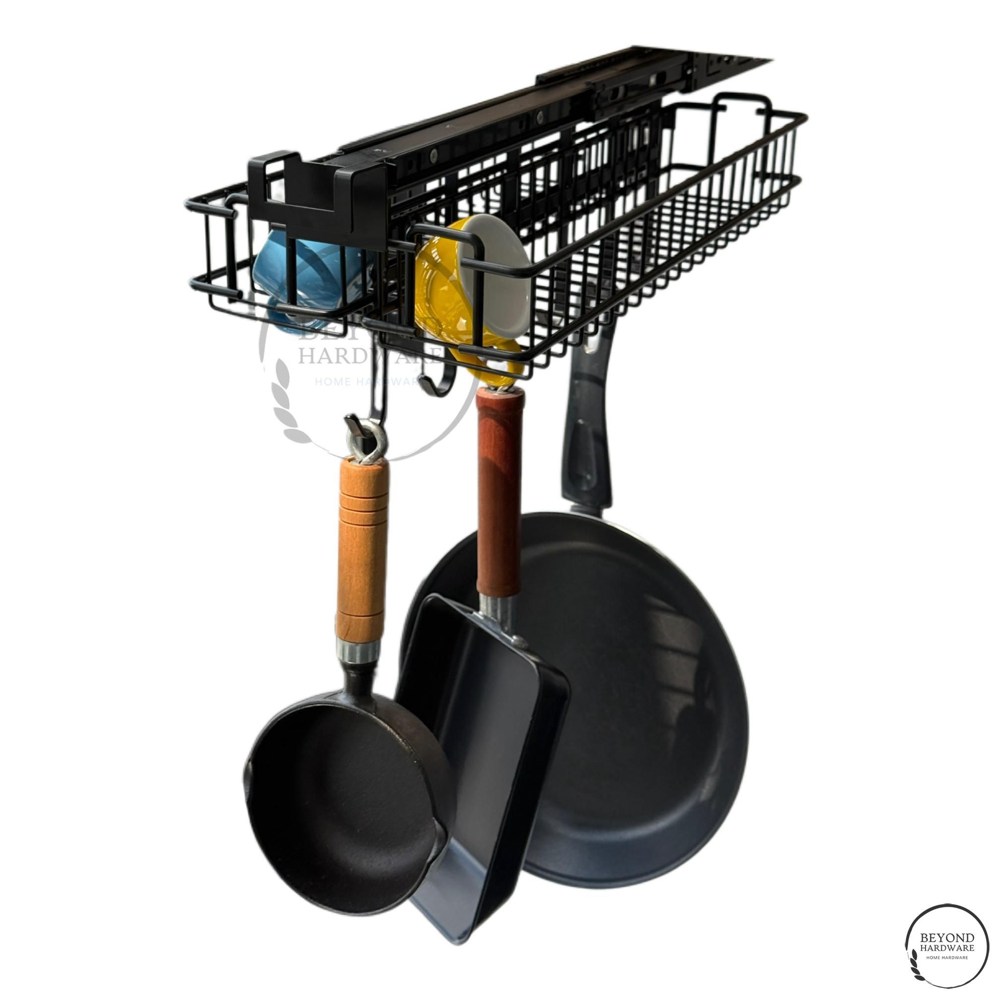 Kitchenware Pans Hanger;6 Hook Kitchen Accessories Hanger in Black Wide Hooks,kitchen Pull Out Hanger for Cabinet Organizer
