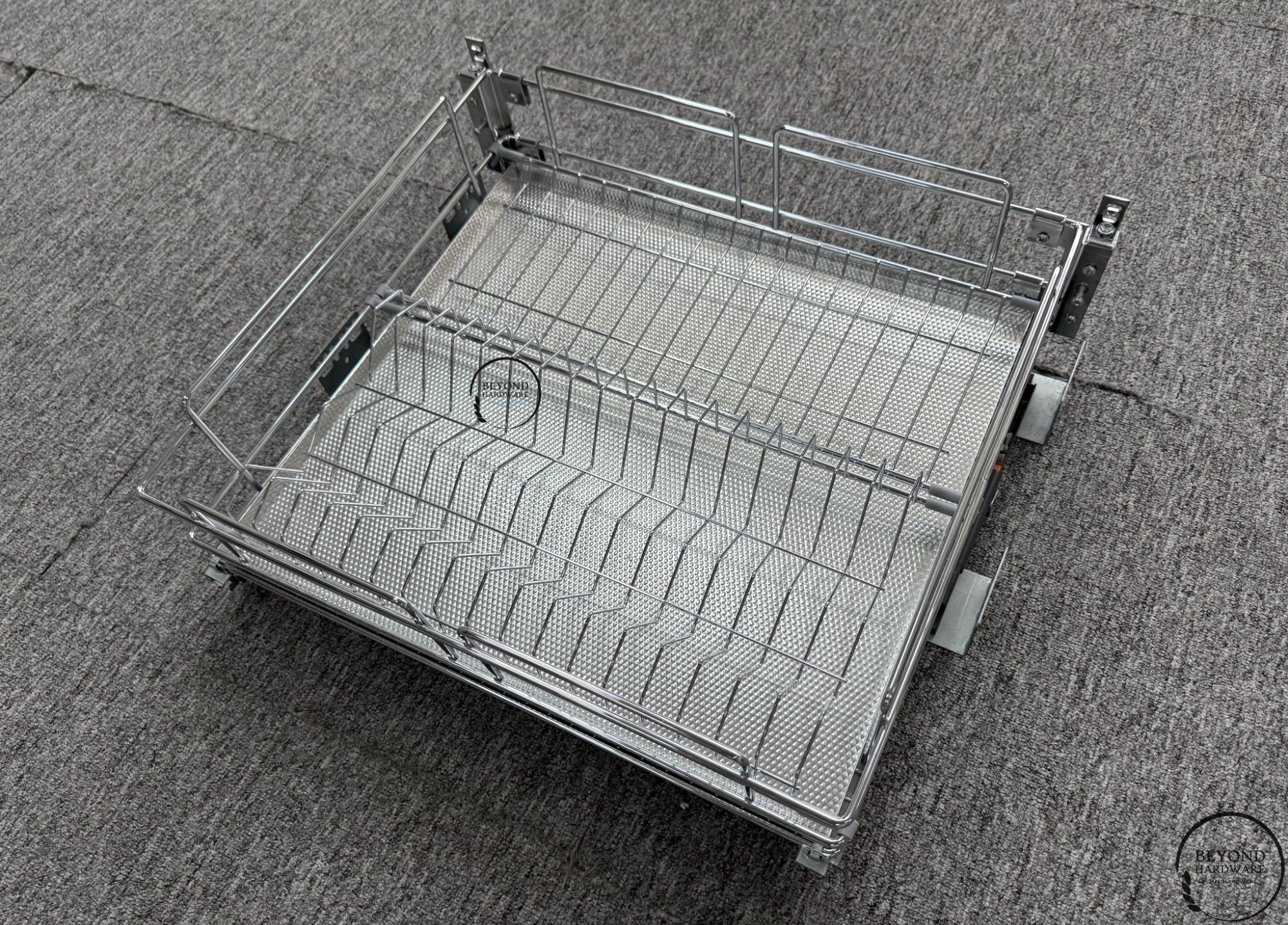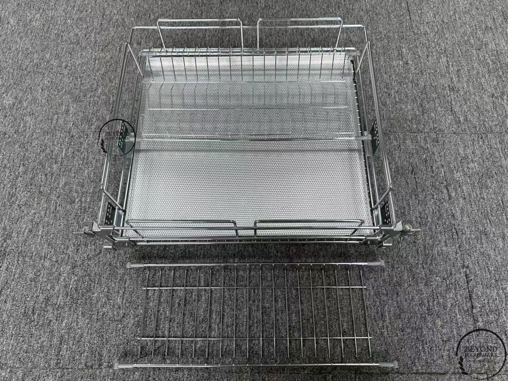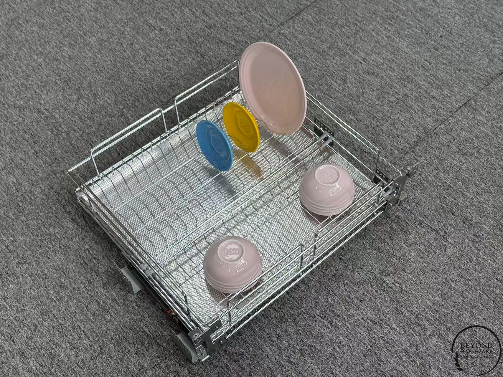 Kitchen Cabinet Drawers with Removable Dish and Bowl Rack Aluminum Water Tray for Dishes Organizer Iron with Chrome Wire Basket